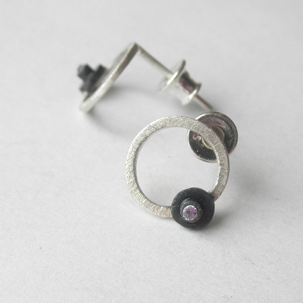 Oryginalność i prostota. OKRĄG - kształt doskonały. Kolekcję cechuje elegancja i prostota jak również ekstrawagancja i indywidualizm. Kolczyki na sztyftach wykonane są ze srebra, cyrkonia. Srebro - próby 0,925, zmatowione, oksydowane . Średnica kolczyka - 1,2 cm. Termin realizacji zamówienia to 1-2 dni