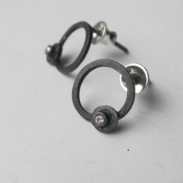 Oryginalność i prostota. OKRĄG - kształt doskonały. Kolekcję cechuje elegancja i prostota jak również ekstrawagancja i indywidualizm. Kolczyki na sztyftach wykonane są ze srebra, cyrkonia. Srebro - próby 0,925, zmatowione, oksydowane . Średnica kolczyka - 1,2 cm. Termin realizacji zamówienia to 1-2 dni
