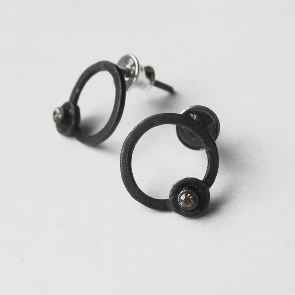 Oryginalność i prostota. OKRĄG - kształt doskonały. Kolekcję cechuje elegancja i prostota jak również ekstrawagancja i indywidualizm. Kolczyki na sztyftach wykonane są ze srebra, cyrkonia. Srebro - próby 0,925, zmatowione, oksydowane . Średnica kolczyka - 1,2 cm. Termin realizacji zamówienia to 1-2 dni