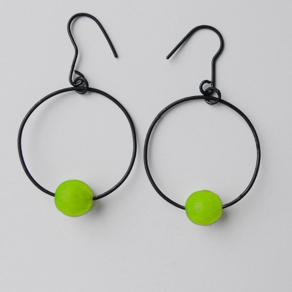 Oryginalność i prostota. OKRĄG - kształt doskonały. Kolekcję cechuje elegancja i prostota jak również ekstrawagancja i indywidualizm. Kolczyki wykonane są ze srebro, Jadeit 1 cm . Srebro - próby 0,925, zmatowione, oksydoane. Długość kolczyków z biglami - 6 cm. Szerokość ok. 3 cm