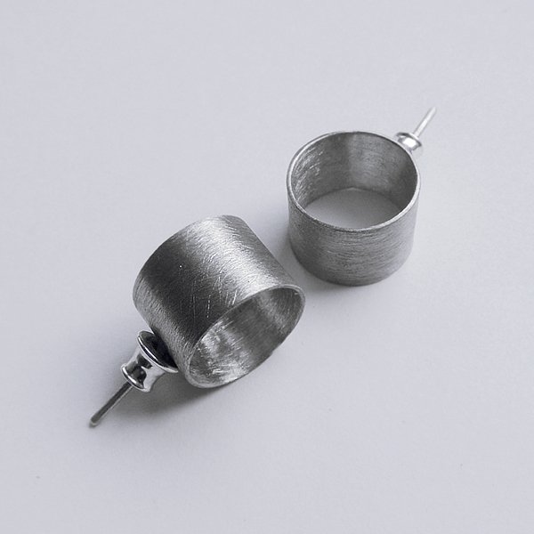 Oryginalność i prostota. OKRĄG - kształt doskonały. Kolekcję cechuje elegancja i prostota jak również ekstrawagancja i indywidualizm. Kolczyki na sztyftach wykonane są z - srebro, Srebro - zmatowione. Szerokość ok. 1 cm. Średnica koła 1,3 cm.