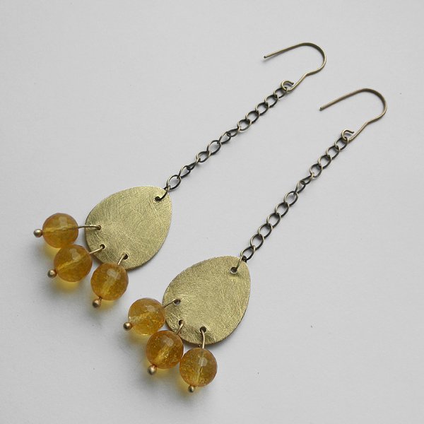 Oryginalność i prostota. Kolekcję cechuje elegancja i prostota jak również ekstrawagancja i indywidualizm. Kolczyki wykonane są z mosiądz, kryształ żółty 1 cm. Mosiądz- zmatowiony..Bigle otwarte - srebro pr. 925,pozłacane. Długość z biglami - ok. 10,5 cm. Szerokość - 2,3 cm Termin realizacji zamówienia to 1-2 dni