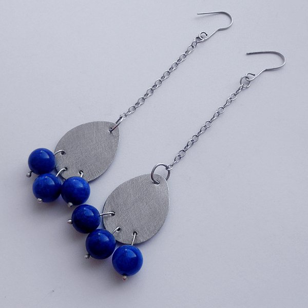 Oryginalność i prostota. Kolekcję cechuje elegancja i prostota jak również ekstrawagancja i indywidualizm. Kolczyki wykonane są z srebro, marmur 1 cm. Srebro- zmatowione.Bigle otwarte - srebro pr. 925,. Długość z biglami - ok. 10,5 cm. Szerokość - 2,3 cm Termin realizacji zamówienia to 1-2 dni
