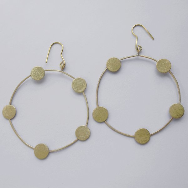 Oryginalność i prostota. OKRĄG - kształt doskonały. Kolekcję cechuje elegancja i prostota jak również ekstrawagancja i indywidualizm. Kolczyki wykonane są z mosiądzu. Mosiądz zmatowione. Bigle otwarte - srebro pr.925,pozłacane Średnica kolczyka - 5,5 cm