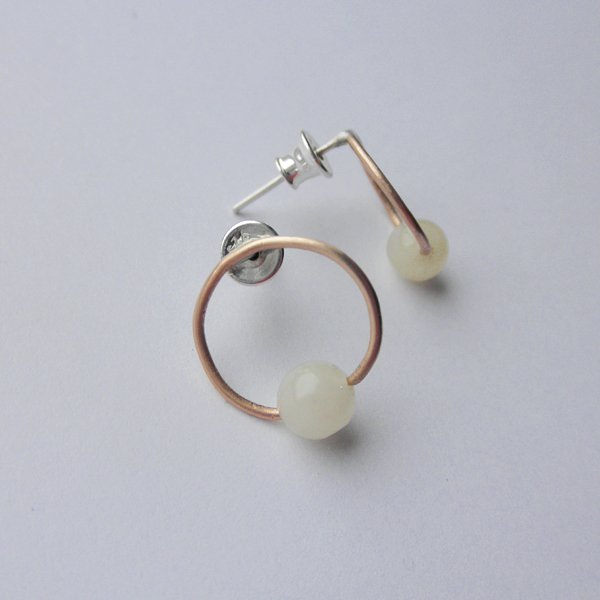Oryginalność i prostota. OKRĄG - kształt doskonały. Kolekcję cechuje elegancja i prostota jak również ekstrawagancja i indywidualizm. Kolczyki na sztyftach wykonane są z - brąz, srebro, .jadeit 0,5 cm Brąz - zmatowiony. Szerokość ok. 1,5 cm.
