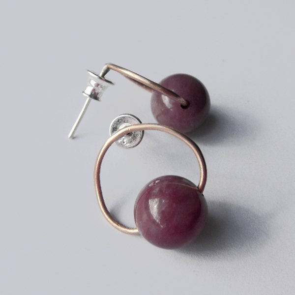 Oryginalność i prostota. OKRĄG - kształt doskonały. Kolekcję cechuje elegancja i prostota jak również ekstrawagancja i indywidualizm. Kolczyki na sztyftach wykonane są z - brąz, srebro, .Kwarc truskawkowy 1 cm Brąz - zmatowiony. Szerokość ok. 1,5 cm.