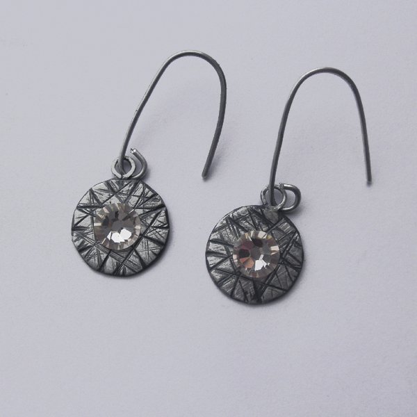 Oryginalność i prostota. OKRĄG - kształt doskonały. Kolekcję cechuje elegancja i prostota jak również ekstrawagancja i indywidualizm. Kolczyki wykonane są ze srebra, kryształ SWAROVSKI ELEMENTS (Wymiary: średnica 7,0 mm ) Srebro - próby 0,925, mocno fakturowane,oksydowane. Średnica kolczyka ok. 1,5 cm . Długość z biglami ok. 35 cm