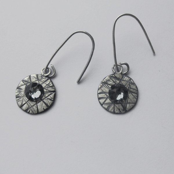 Oryginalność i prostota. OKRĄG - kształt doskonały. Kolekcję cechuje elegancja i prostota jak również ekstrawagancja i indywidualizm. Kolczyki wykonane są ze srebra, kryształ SWAROVSKI ELEMENTS (Wymiary: średnica 7,0 mm ) Srebro - próby 0,925, mocno fakturowane,oksydowane. Średnica kolczyka ok. 1,5 cm . Długość z biglami ok. 35 cm