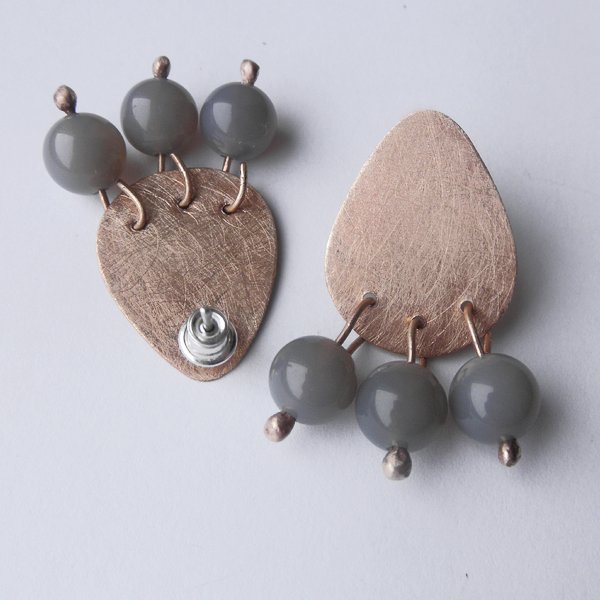 Oryginalność i prostota. OKRĄG - kształt doskonały. Kolekcję cechuje elegancja i prostota jak również ekstrawagancja i indywidualizm. Kolczyki na sztyftach wykonane są z -brąz, srebro, jadeit 0,8 cm. Brąz - zmatowiony. Szerokość ok. 1,7 cm. Długość 3,5