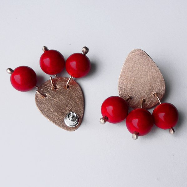 Oryginalność i prostota. OKRĄG - kształt doskonały. Kolekcję cechuje elegancja i prostota jak również ekstrawagancja i indywidualizm. Kolczyki na sztyftach wykonane są z -brąz, srebro, marmur 1 cm. Brąz - zmatowiony. Szerokość ok. 1,7 cm. Długość 3,5