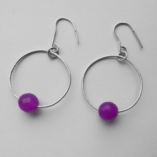 Oryginalność i prostota. OKRĄG - kształt doskonały. Kolekcję cechuje elegancja i prostota jak również ekstrawagancja i indywidualizm. Kolczyki wykonane są ze srebro, jadeit 1cm. Srebro - próby 0,925, zmatowione. Długość kolczyków z biglami - 6 cm. Szerokość ok. 3 cm