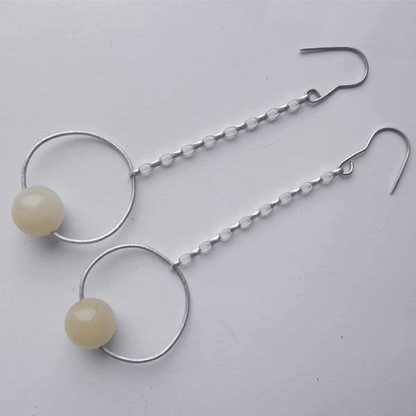Oryginalność i prostota. OKRĄG - kształt doskonały. Kolekcję cechuje elegancja i prostota jak również ekstrawagancja i indywidualizm. Kolczyki wykonane są ze srebro, jadeit 1,2 cm. Srebro - próby 0,925, zmatowione, oksydowane. Szerokość kolczyków 0k. 2,5 cm.Długość kolczyków - ok. 9,5 cm