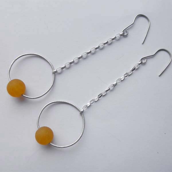 Oryginalność i prostota. OKRĄG - kształt doskonały. Kolekcję cechuje elegancja i prostota jak również ekstrawagancja i indywidualizm. Kolczyki wykonane są ze srebro, agat 1 cm. Srebro - próby 0,925, zmatowione, oksydowane. Szerokość kolczyków 0k. 2,5 cm.Długość kolczyków - ok. 9,5 cm