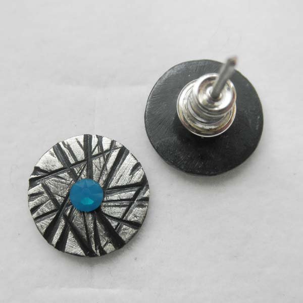 Oryginalność i prostota. OKRĄG - kształt doskonały. Kolekcję cechuje elegancja i prostota jak również ekstrawagancja i indywidualizm. Kolczyki na sztyftach wykonane są z: srebro, kryształ SWAROVSKI ELEMENTS .Srebro - zmatowiony, oksydowane. Średnica kolczyka - 1 cm