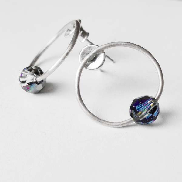 Oryginalność i prostota. OKRĄG - kształt doskonały. Kolekcję cechuje elegancja i prostota jak również ekstrawagancja i indywidualizm. Kolczyki na sztyftach wykonane są z - srebro, SWAROVSKI ELEMENTS (Wymiary: 6mm) Srebro - zmatowione. Szerokość ok. 1,5 cm.