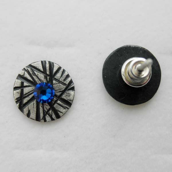 Oryginalność i prostota. OKRĄG - kształt doskonały. Kolekcję cechuje elegancja i prostota jak również ekstrawagancja i indywidualizm. Kolczyki na sztyftach wykonane są z: srebro, kryształ SWAROVSKI ELEMENTS .Srebro - zmatowiony, oksydowane. Średnica kolczyka - 1 cm