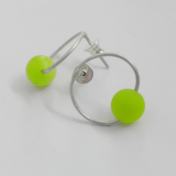 Oryginalność i prostota. OKRĄG - kształt doskonały. Kolekcję cechuje elegancja i prostota jak również ekstrawagancja i indywidualizm. Kolczyki na sztyftach wykonane są z - srebro, jadeit 0,8 cm. Srebro - zmatowione. Szerokość ok. 1,5 cm.