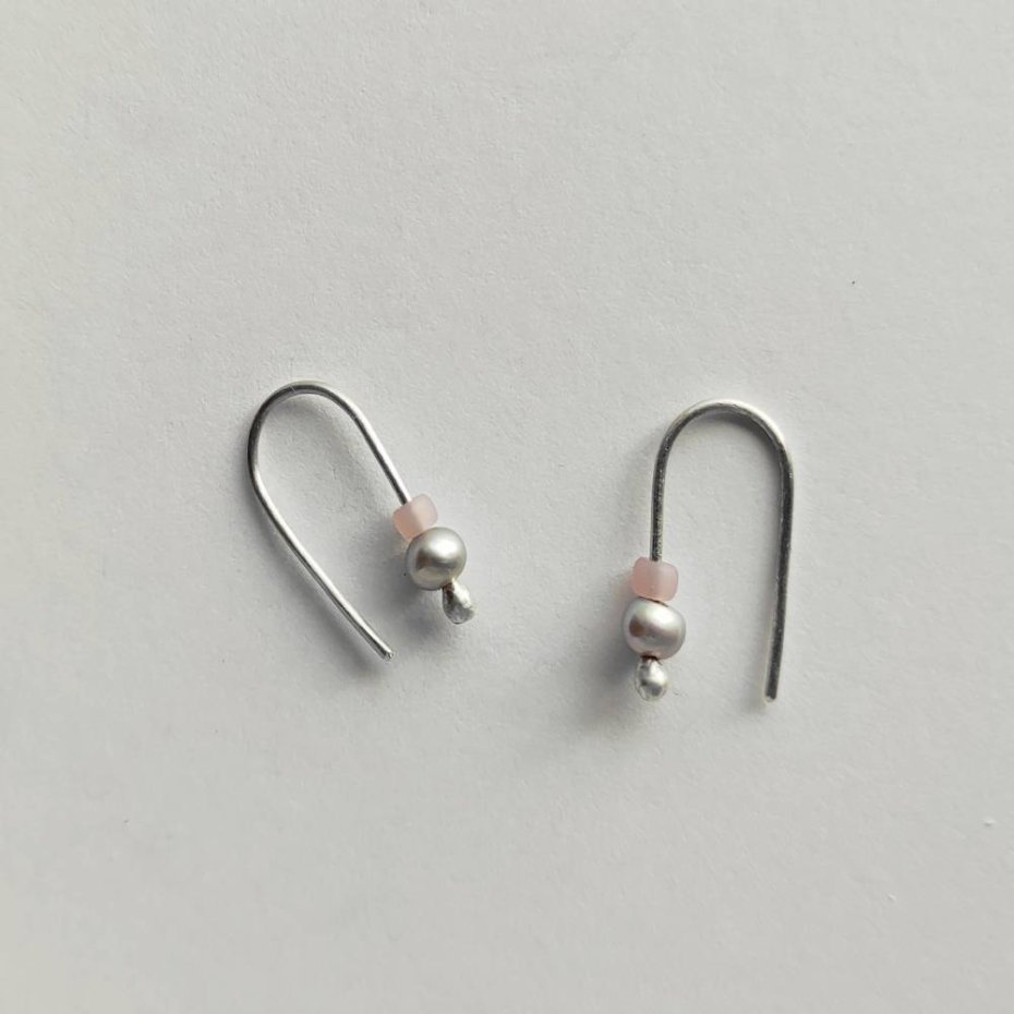 Oryginalność i prostota. OKRĄG - kształt doskonały. Kolekcję cechuje elegancja i prostota jak również ekstrawagancja i indywidualizm. Kolczyki wykonane są z - srebro, Perła słodkowodna srebrna oponka 5x3mm, szklane koraliki. Srebro - zmatowione. Długość ok 1,7 cm.