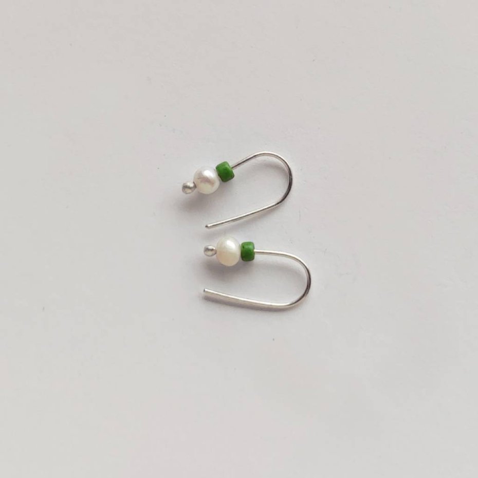 Oryginalność i prostota. OKRĄG – kształt doskonały. Kolekcję cechuje elegancja i prostota jak również ekstrawagancja i indywidualizm. Kolczyki wykonane są z – srebro, Perła słodkowodna srebrna oponka 4 mm, koraliki szklane. Srebro – zmatowione. Długość ok. 1,7 cm.