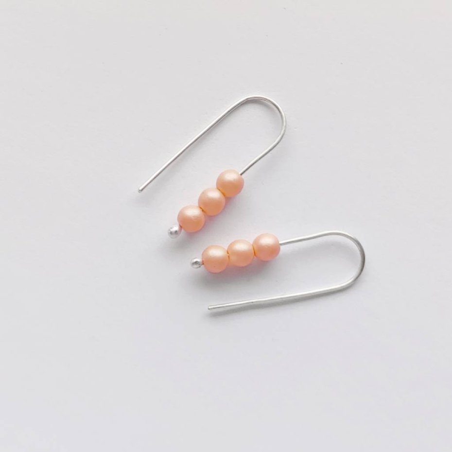 Oryginalność i prostota. OKRĄG - kształt doskonały. Kolekcję cechuje elegancja i prostota jak również ekstrawagancja i indywidualizm. Kolczyki wykonane są z - srebro, koraliki czeskie 0,4 cm. Srebro - zmatowione. Długość ok 2,5cm.