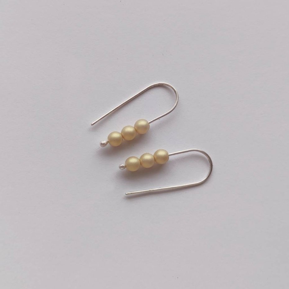Oryginalność i prostota. OKRĄG - kształt doskonały. Kolekcję cechuje elegancja i prostota jak również ekstrawagancja i indywidualizm. Kolczyki wykonane są z - srebro, koraliki czeskie 0,4 cm. Srebro - zmatowione. Długość ok 2,5cm.