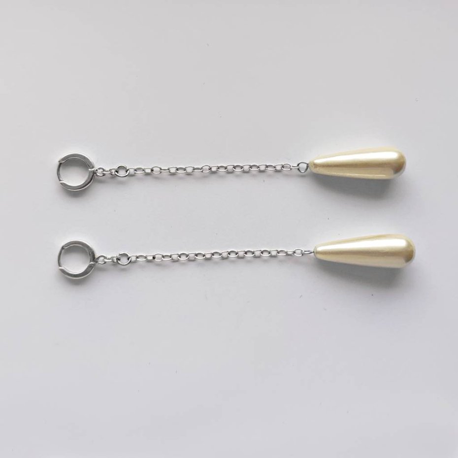 Oryginalność i prostota. OKRĄG – kształt doskonały. Kolekcję cechuje elegancja i prostota jak również ekstrawagancja i indywidualizm. Kolczyki wykonane są ze srebro, perła seashell kropla 30X10 mm. srebrne bigle zapinane okrągłe kajdanki AG925 12mm. Srebro – próby 0,925, zmatowione. Długość kolczyków – ok. 12,5 cm