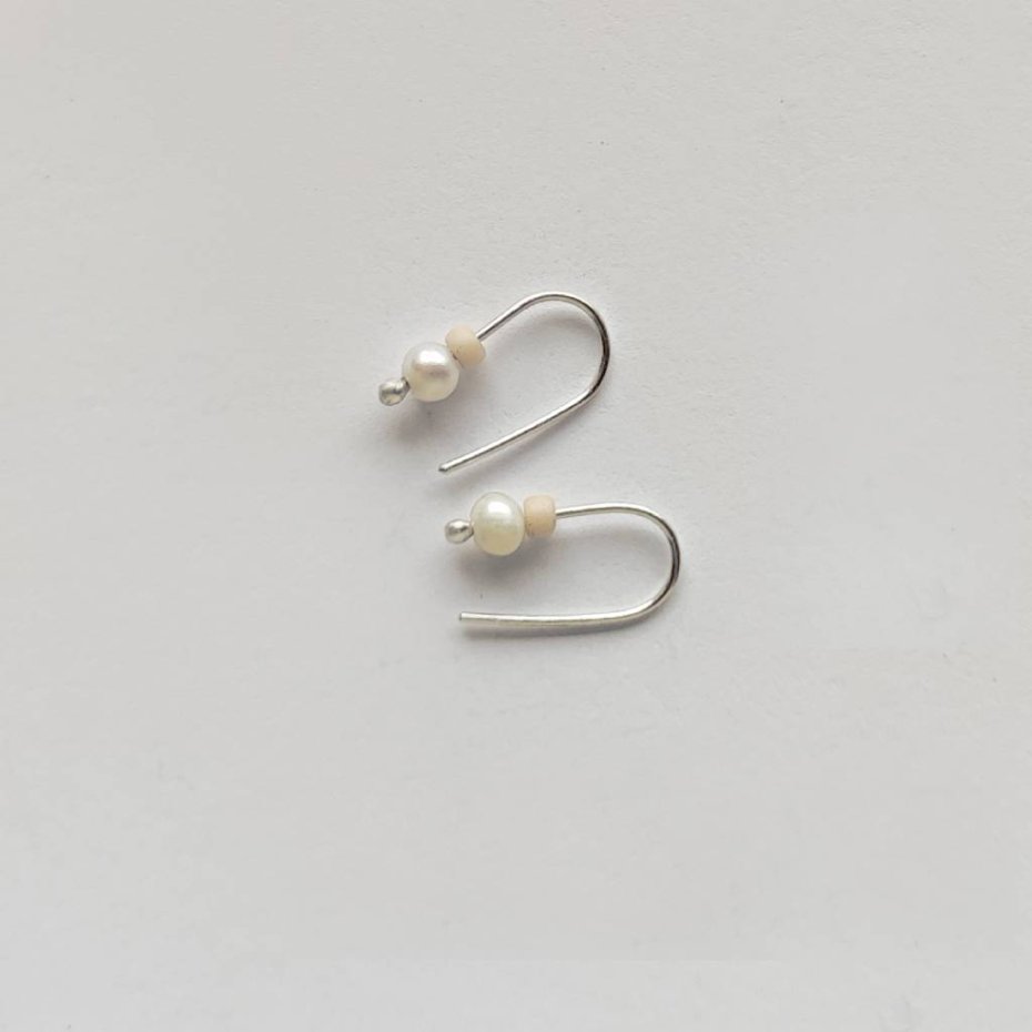 Oryginalność i prostota. OKRĄG – kształt doskonały. Kolekcję cechuje elegancja i prostota jak również ekstrawagancja i indywidualizm. Kolczyki wykonane są z – srebro, Perła słodkowodna srebrna oponka 4 mm, koraliki szklane. Srebro – zmatowione. Długość ok. 1,7 cm.