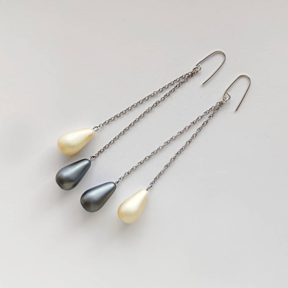 Oryginalność i prostota. OKRĄG – kształt doskonały. Kolekcję cechuje elegancja i prostota jak również ekstrawagancja i indywidualizm. Kolczyki wykonane są ze srebro, szklane koraliki ( 18X11 mm), stal chirurgiczna . Srebro – próby 0,925, zmatowione. Długość kolczyków – ok. 9cm.