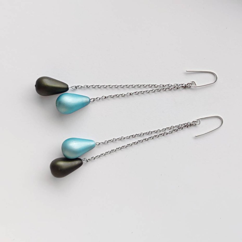Oryginalność i prostota. OKRĄG – kształt doskonały. Kolekcję cechuje elegancja i prostota jak również ekstrawagancja i indywidualizm. Kolczyki wykonane są ze srebro, szklane koraliki ( 18X11 mm), stal chirurgiczna . Srebro – próby 0,925, zmatowione. Długość kolczyków – ok. 9cm.