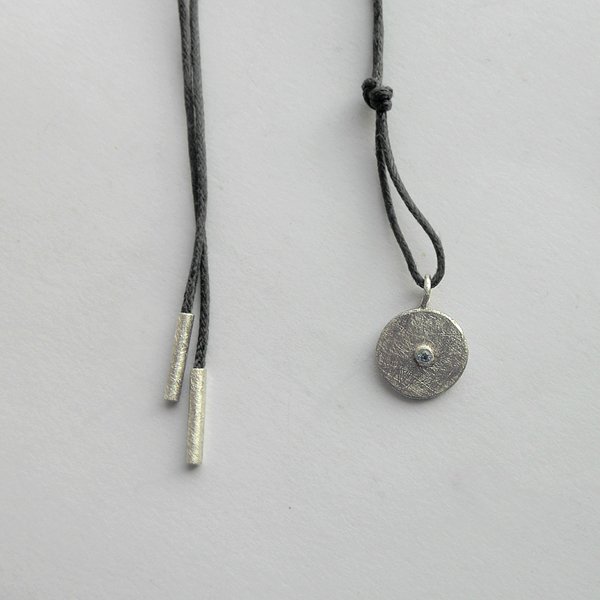Wisior wykonany jest ze srebra, cyrkonia, ozdobny sznurek