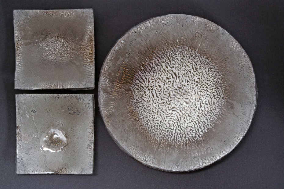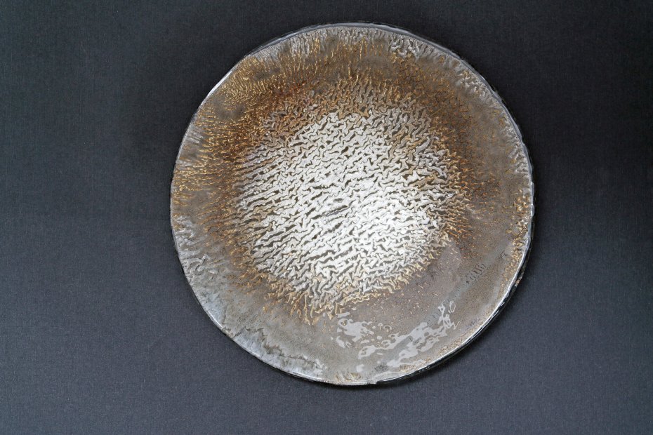 Unikalna i wyjątkowa pod każdym względem, wypalana w wysokiej temperaturze, barwiona i ręcznie cięta szklana patera, a zarazem talerz.