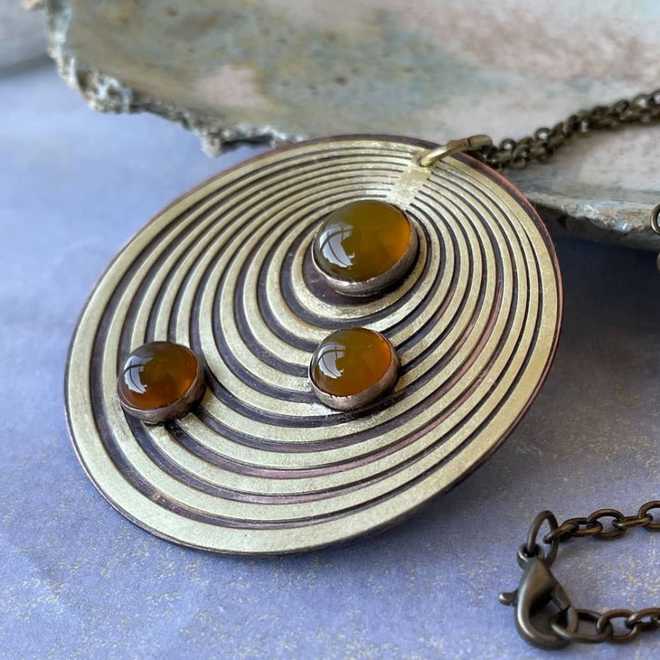 Tagi: #biżuteria z miedzi, #motyw kosmosu, #okrągły wisior, #z agatem