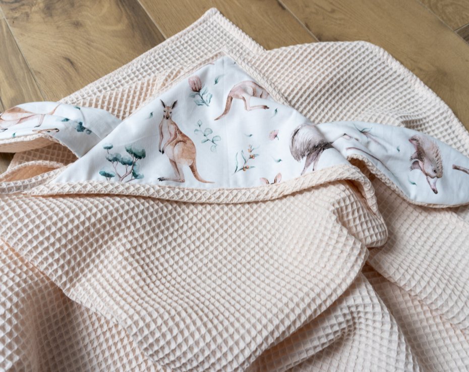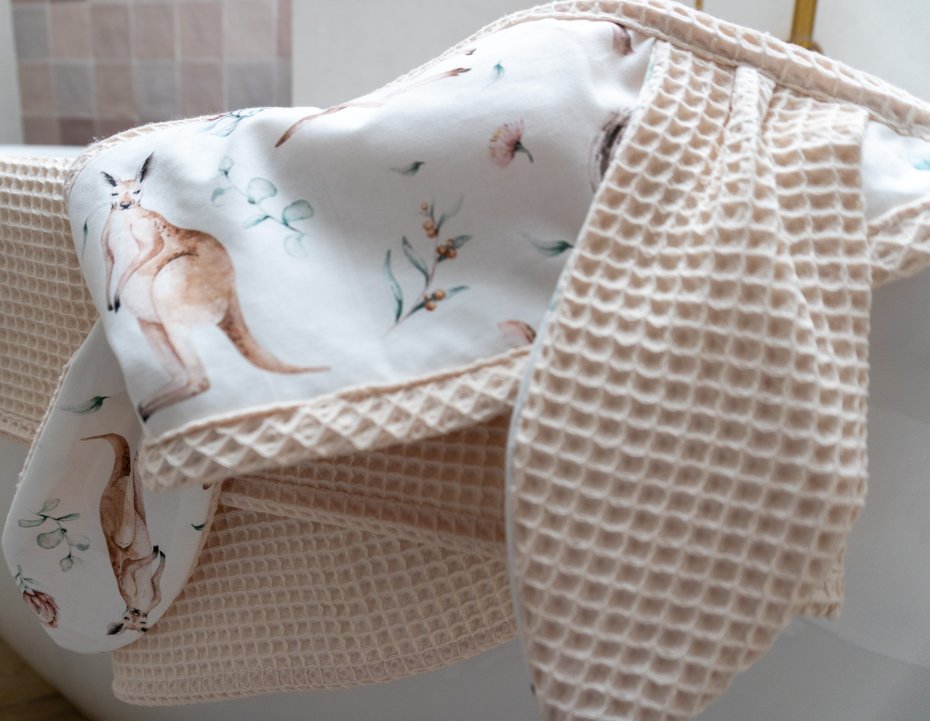 Zarówno tkanina wafelkowa, jak i bawełna posiadają certyfikaty OEKO-TEX, są w pełni bezpieczne dla dzieci.