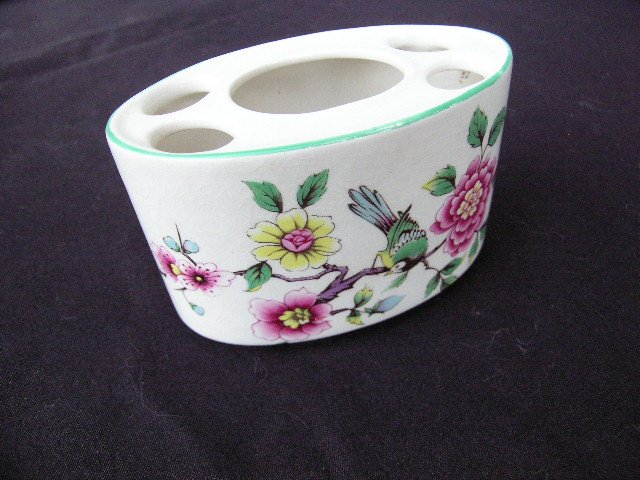 Dużej urody ceramiczny przybornik łazienkowy na szczteczki do zębów i pastę. Sygnowany OLD FOLEY KAMES KENT Made in England. z kultowej już serii CHINESE ROSE. Straszej daty to rzecz,urodziwa wielce...i praktyczna ;)