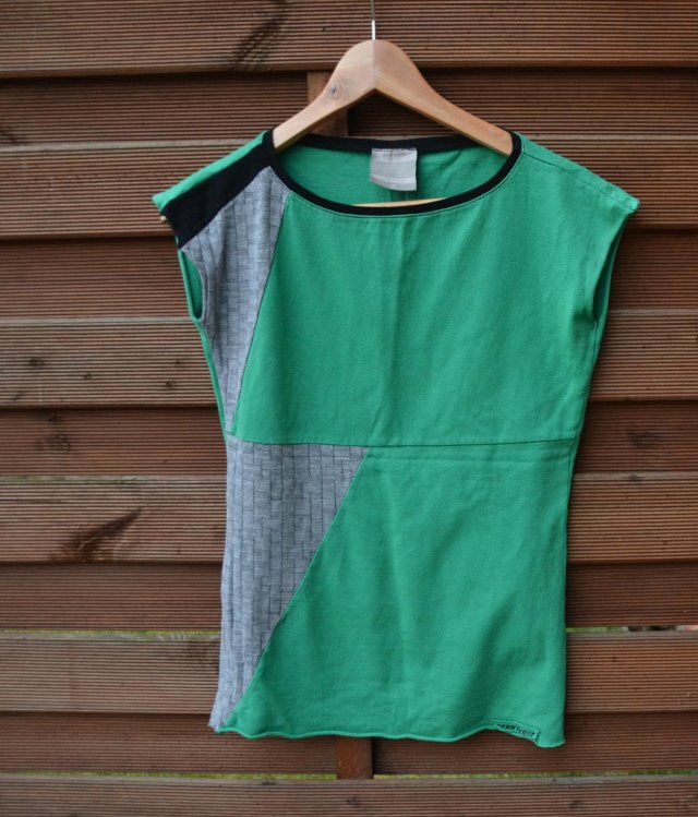 Surowo wykończony, stylowy t-shirt w cudnym zielonym kolorze połączonym z szarością i czernią.