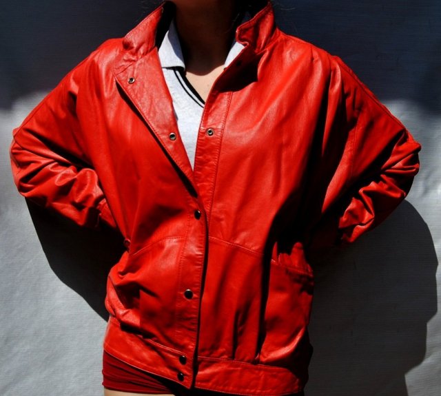 Mocno czerwona kurtka z eco skóry, dzięki której wyróżnisz się z tłumu. Stan idealny, rozmiar 38/40.