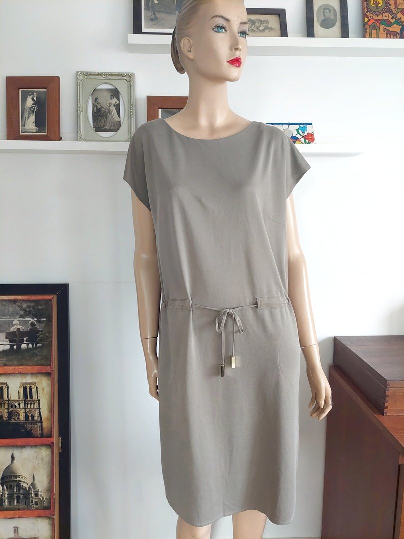letnia sukienka marki Echo. rozmiar z metki 42, proszę sprawdzić wymiary. na manekinie małe 38, materiał brak metki, delikatny, miły w dotyku. kolor jasnej oliwki. Stan bardzo dobry,