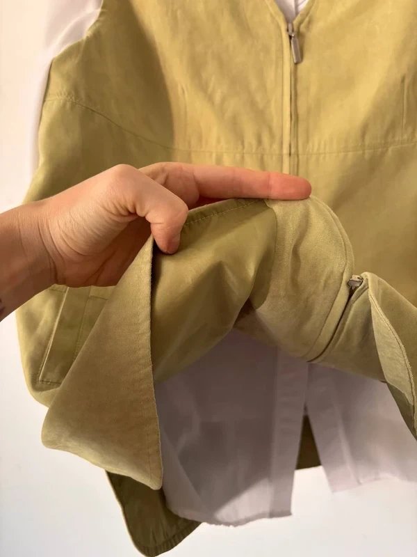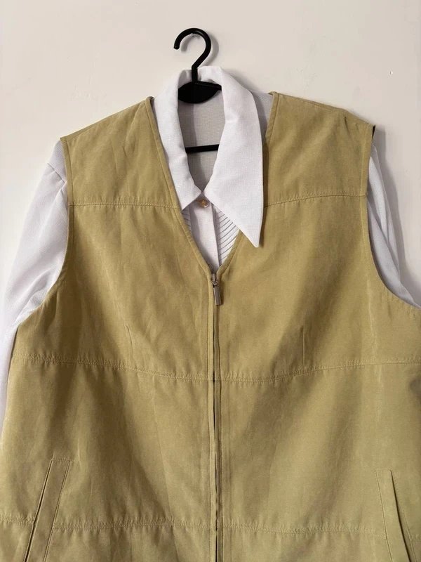 Stylowa kamizelka w kolorze oliwkowym, zapinana na suwak.