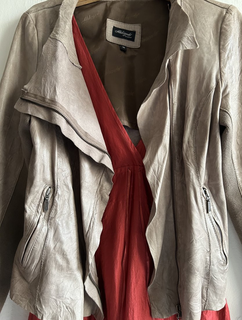 Tagi: #leather 100% damska, #miękka skóra naturalna, #oliwkowa kurtka asymetryczna, #skórzana kurtka damska