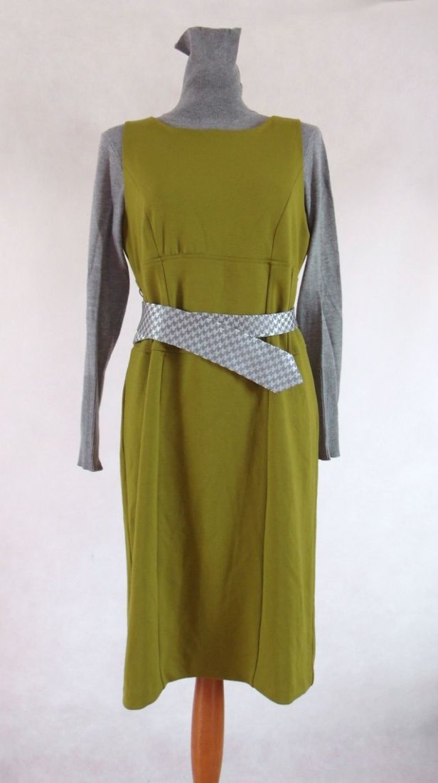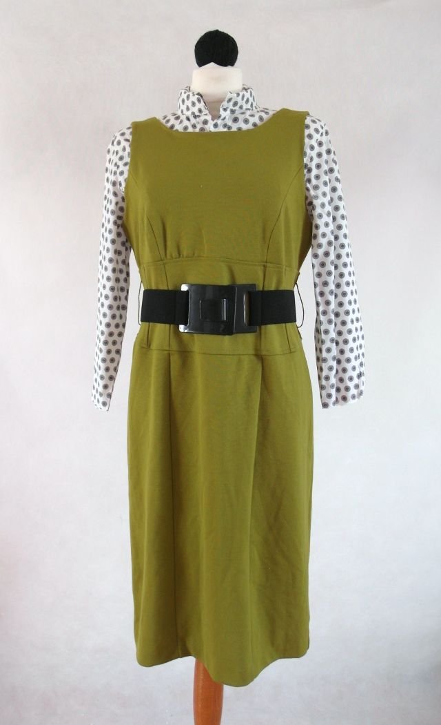 wyrazisty, oliwkowy kolor.Elastyczna, mięsista dzianina, z tyłu długi suwak.Pas czarny gumowany z dużą klamrą.świetna do koszul, golfów i oczywiście do kozaków.