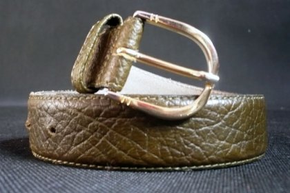 Pasek firmy C&A.Uszyty z oliwkowej naturalnej skóry.Wew.welur.Metalowa-pozłacana klamra.