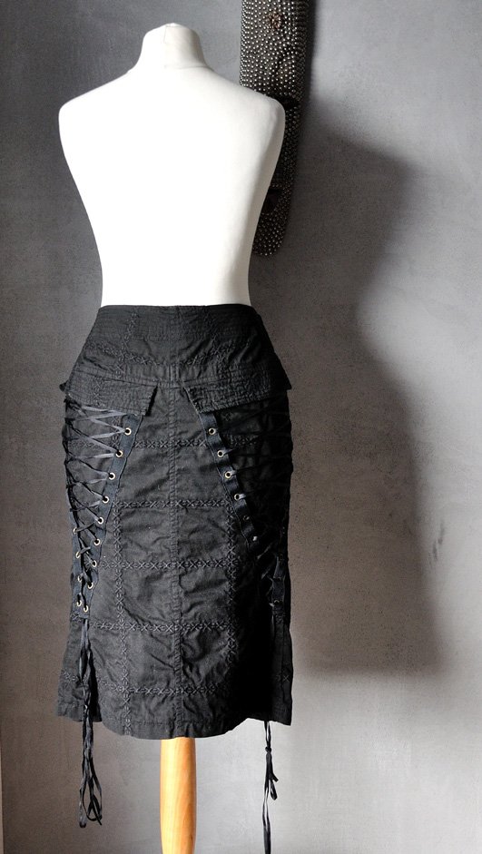 Ukośnie, na bokach i tyle ma fenomenalne sznurowania - można dopasowywać, jak głęboko będzie przylegać do ciała.