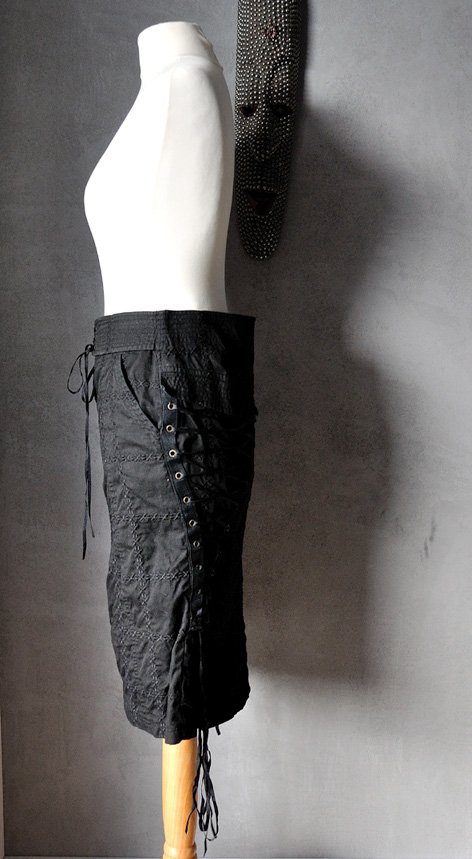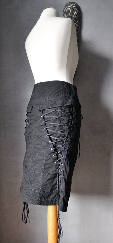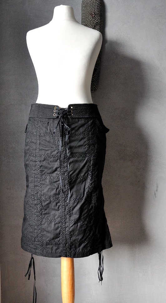 Ukośnie, na bokach i tyle ma fenomenalne sznurowania - można dopasowywać, jak głęboko będzie przylegać do ciała.