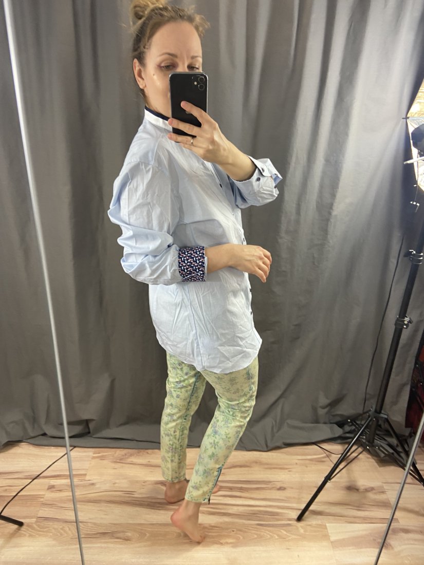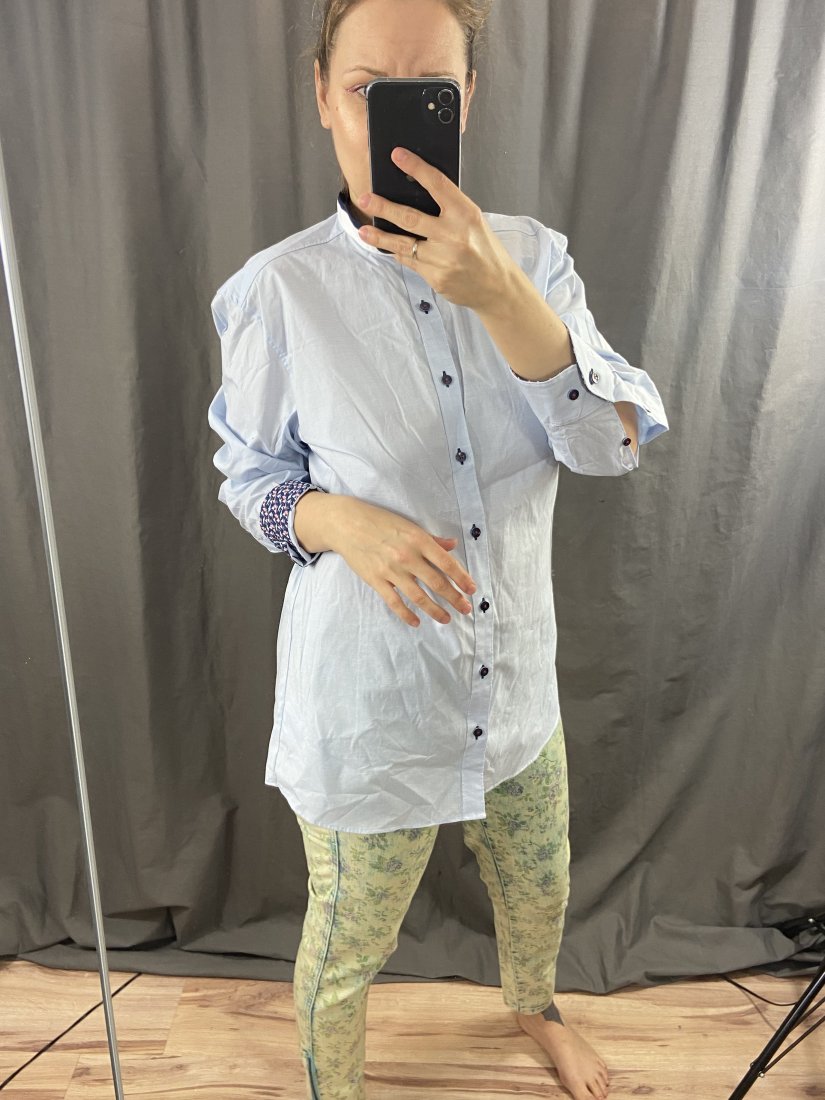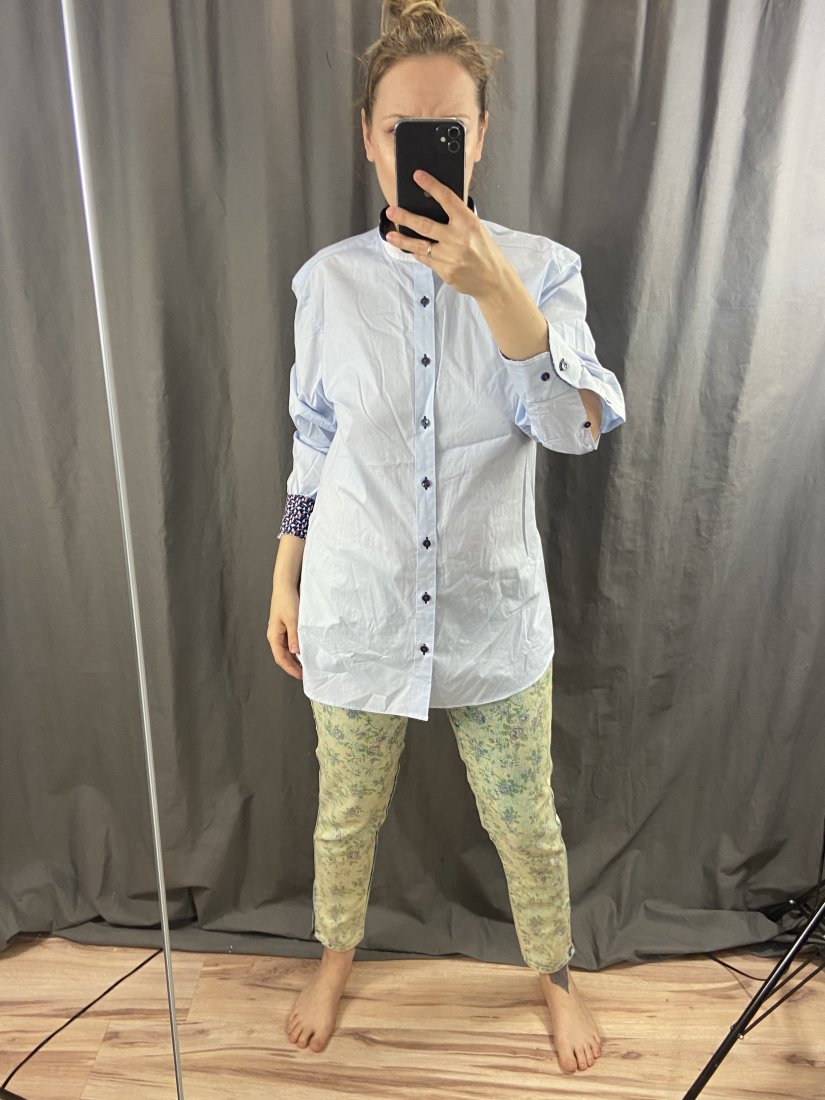 Bawełniana koszula marki Olymp. Z założenia męska, ale na babce też super. Podszycia i mankiety w uroczy nadruk - żaglówki.