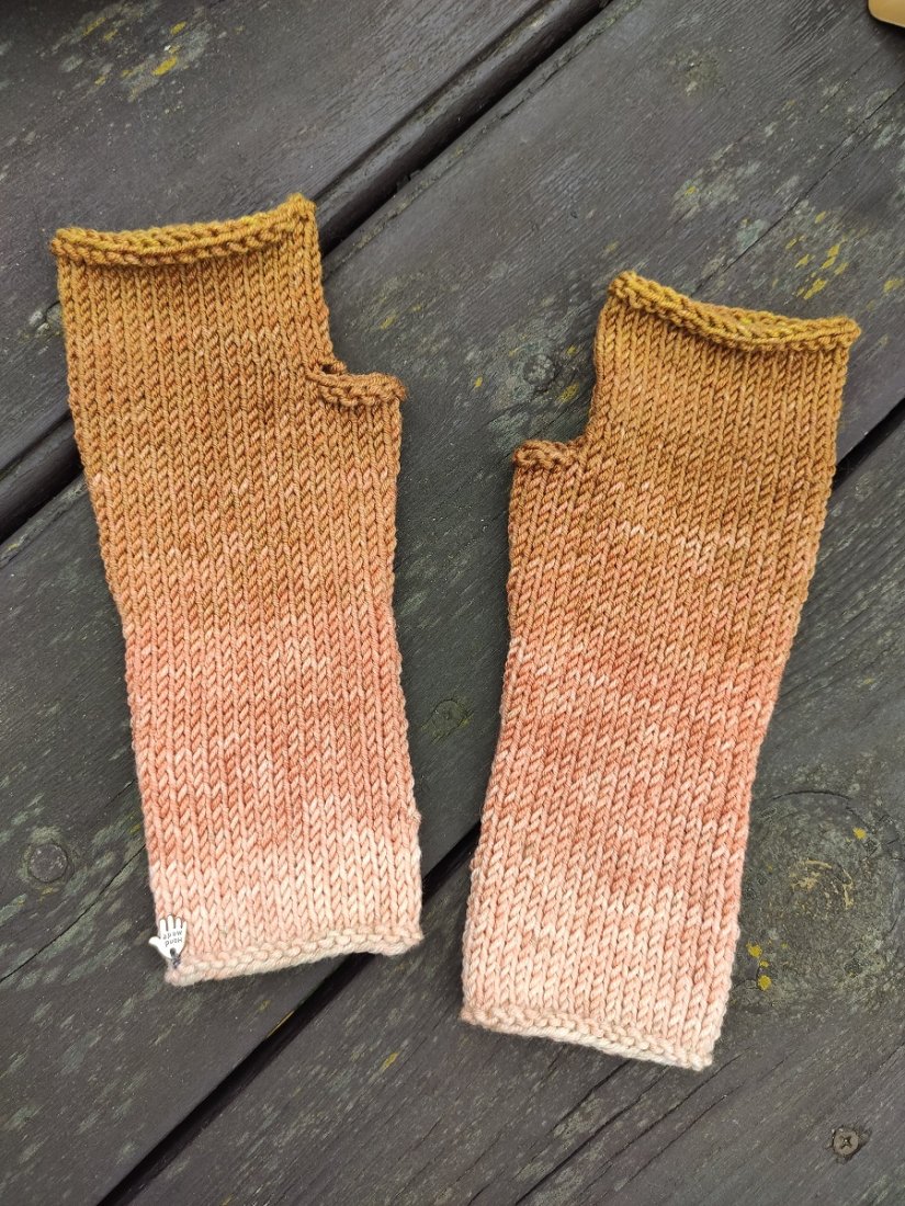 Ciepłe mitenki wykonane na drutach z wysokiej jakości włóczki w optymistycznej kolorystyce. Włóczka- to 100% wełna merino superwash, trochę sprężysta, dzięki czemu ładnie dopasowuje się do dłoni.