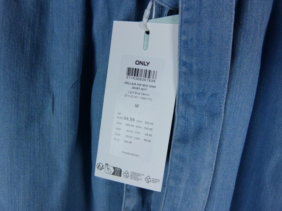 Tagi: #cienki jeans, #only, #spódnica midi, #z metką