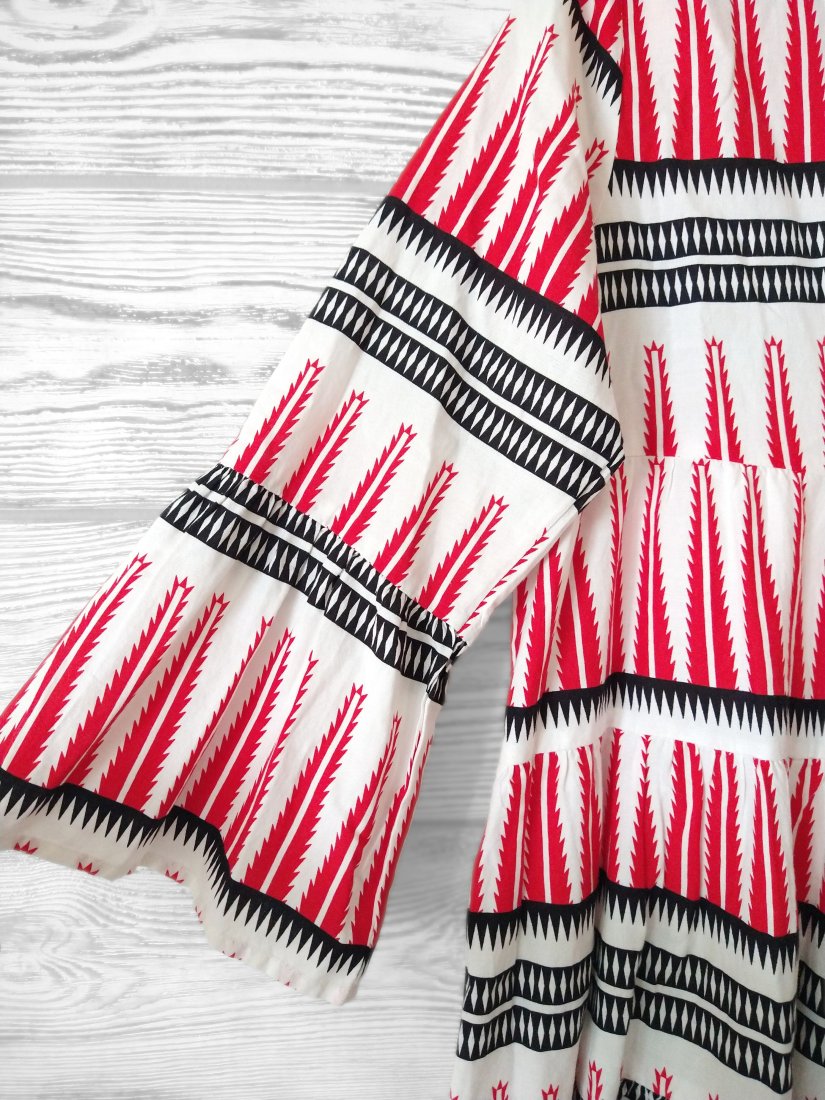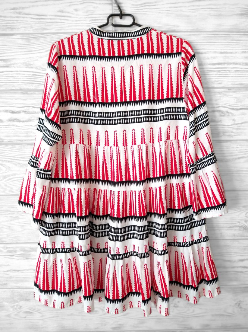 Swobodna krótka sukienka trapezowa z głębokim dekoltem.