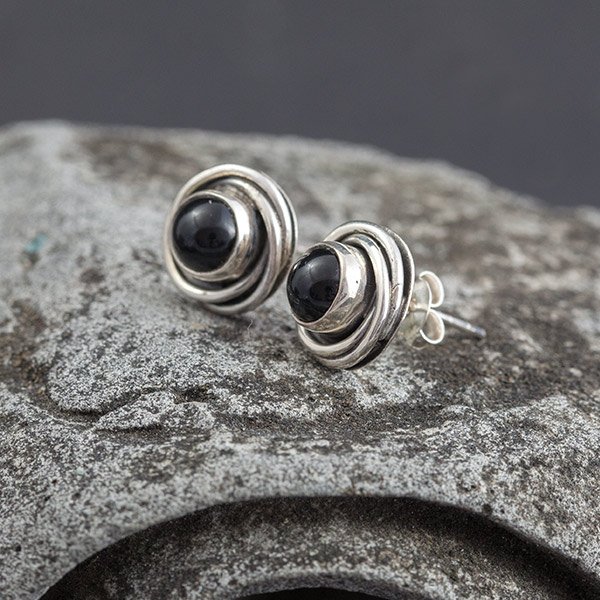 Kolczyki - sztyfty wykonane ze srebra próby 925 oraz onyksu. Wielkość kamienia 7mm. Wielkość kolczyków 11mm. Kolczyki są ozdobnie zapakowane.