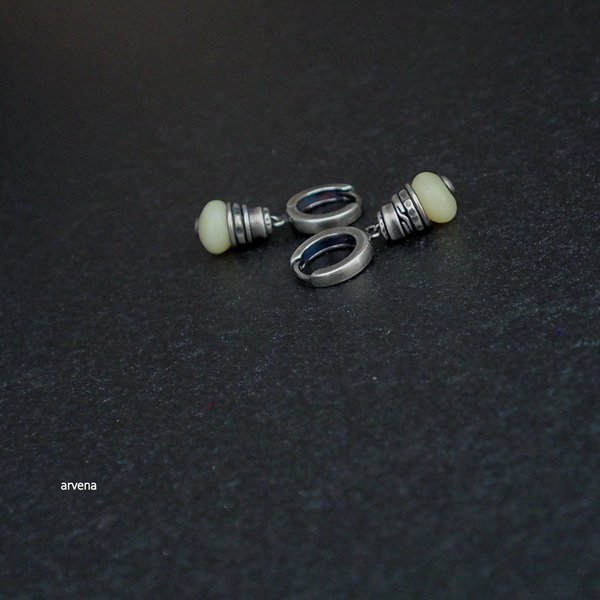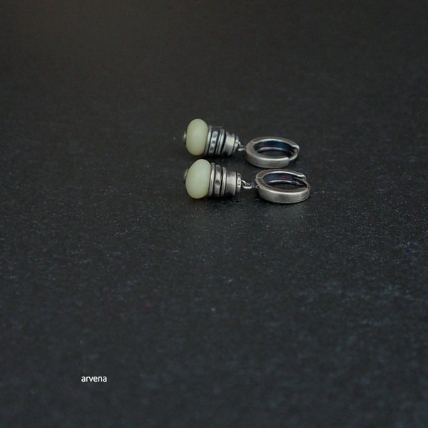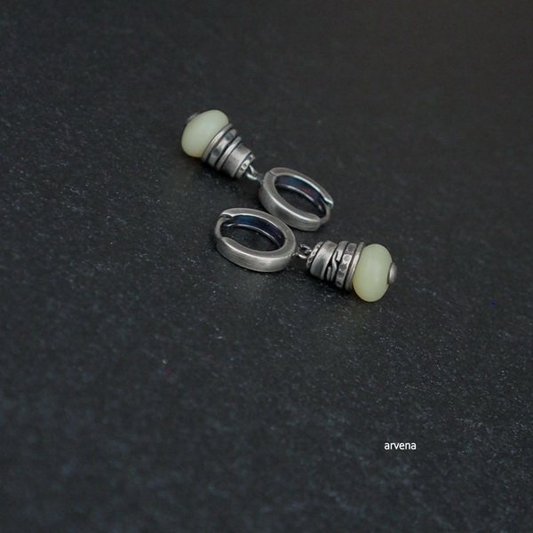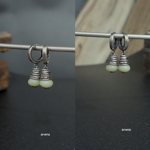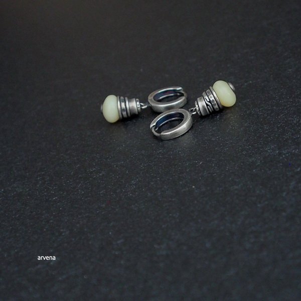 Kolczyki wykonane w 100% z oksydowanego srebra pr. 925 oraz naturalnych kamieni: opal żółty śr. 0,8 cm. Długość całkowita kolczyków - ok. 2,6 cm.