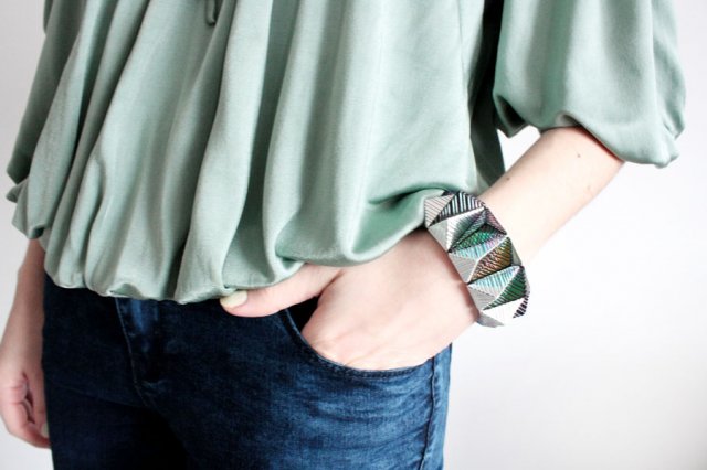 Lekka, opalizująca bransoletka na gumce.